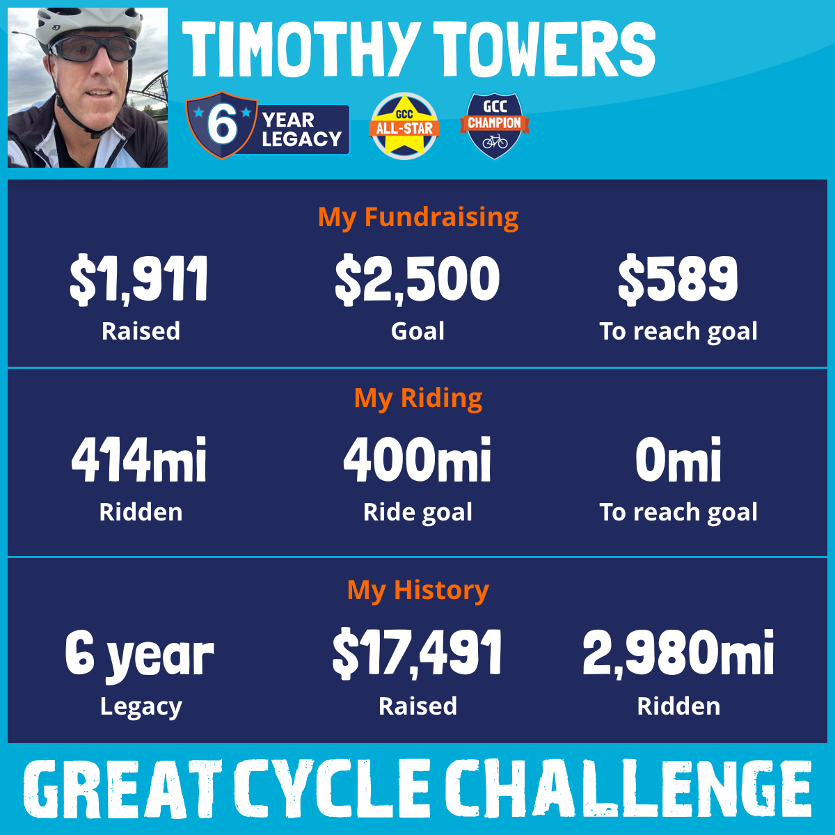This year this ride is really personal to me. Some of you may already know this, but in February we lost my father-in-law and friend Bill Shannon to liver cancer. This disease took him very quickly. Two weeks after being diagnosed he was gone, it was that quick. Cancer is a terrible disease and nobody should have to suffer from this disease, especially children. I am also riding this year in memory of my cousin Carl Banke. Carl passed away on May 15th, 2022 of pancreatic cancer. Two of my most favorite people here on earth were taken by cancer much to soon. So this year I am riding these miles in memory of Bill Shannon and Carl Banke.... Please help me by donating to this worthy cause. No child should ever suffer like these two have because of cancer.