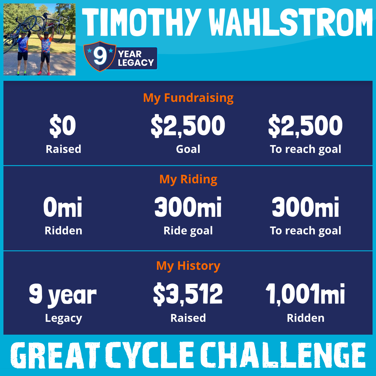 87 mi Ridden$505 Raised2020