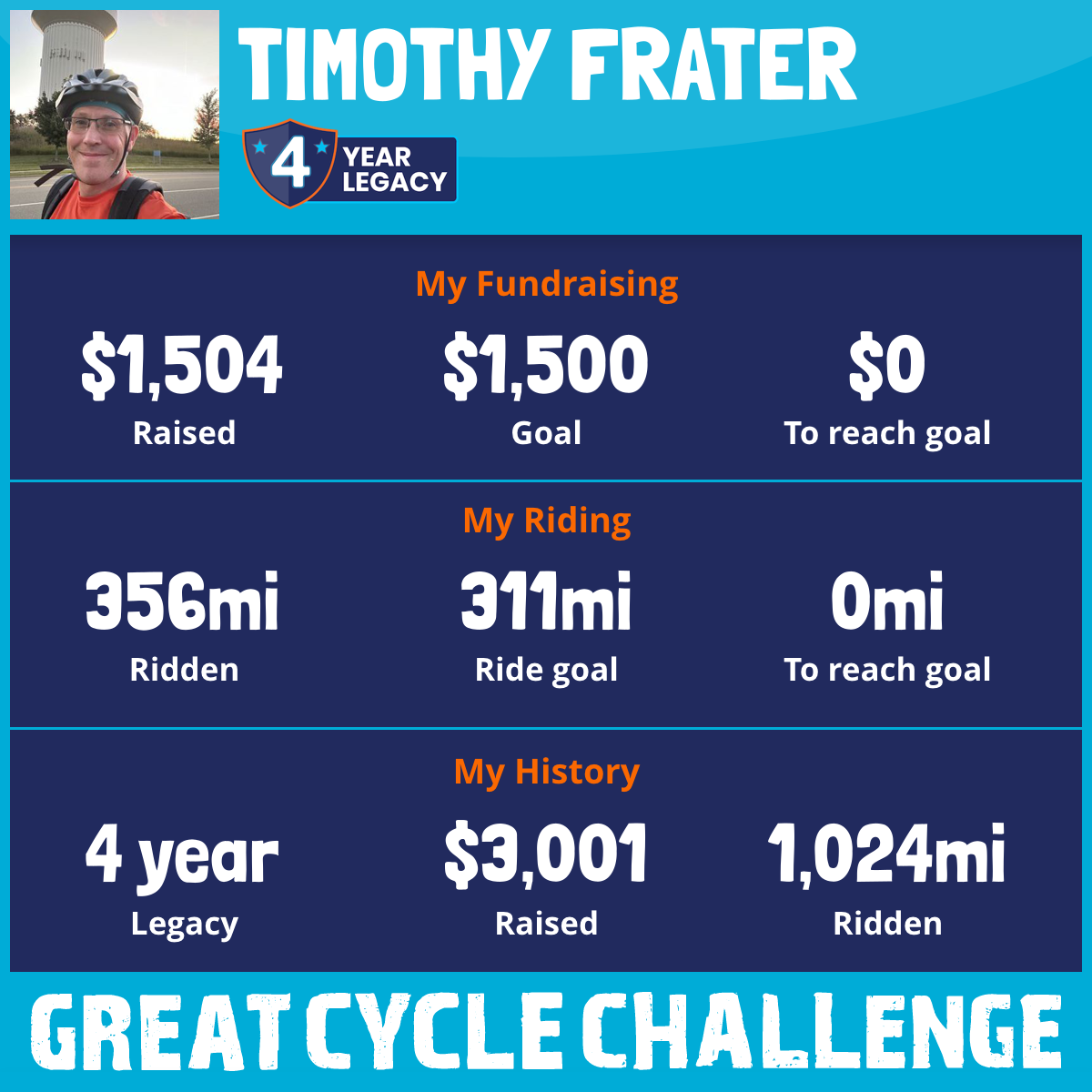 This September, I am taking part in the Great Cycle Challenge to fight kids' cancer, for the 4th year in a row! I need your help. I have lofty goals and plan on biking from Maple Grove to Duluth at one point! Oofta… 🤯🙌🏽 but here we go!!! Gotta have those goals.