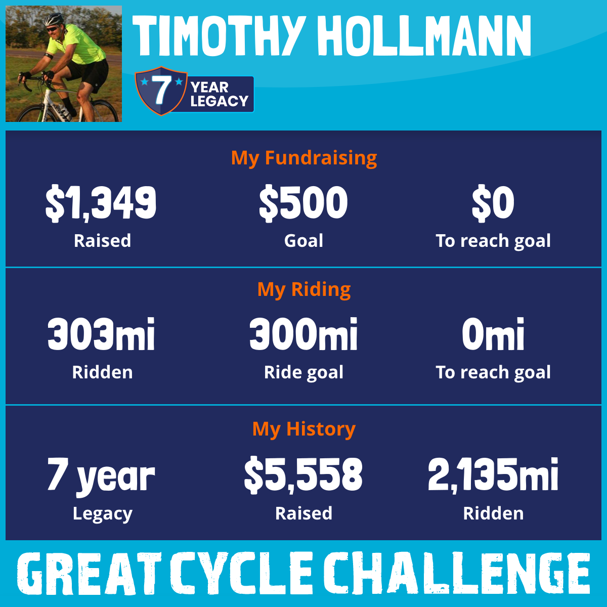 303 mi Ridden$1,349 Raised2025