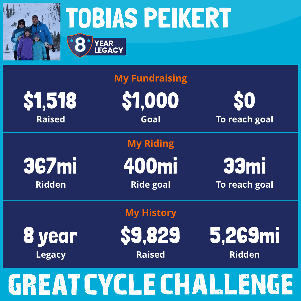 I am riding 400 mi to fight kids' cancer and save little lives. Please sponsor me to support my challenge!