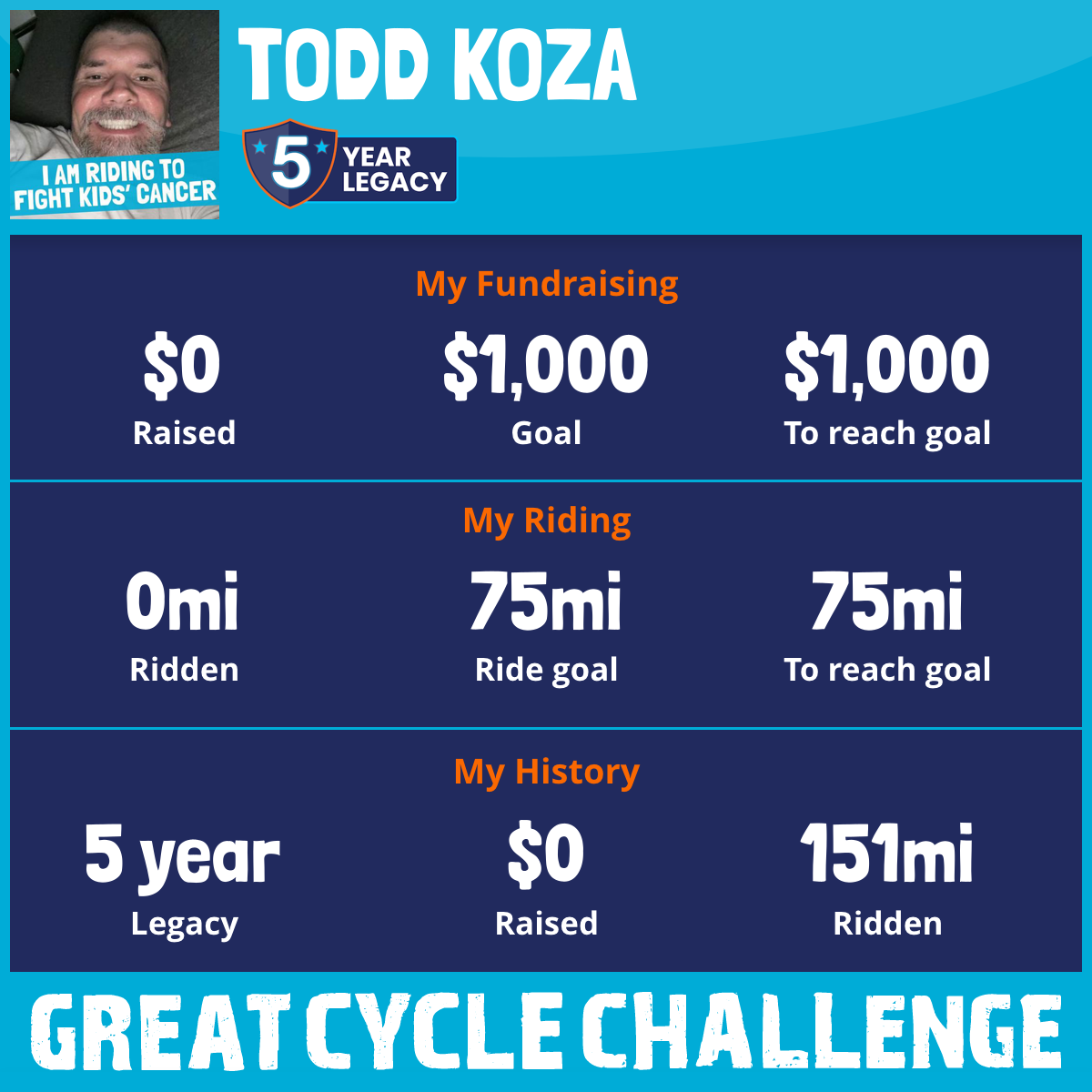 I am riding 75 mi to fight kids' cancer and save little lives. Please sponsor me to support my challenge!