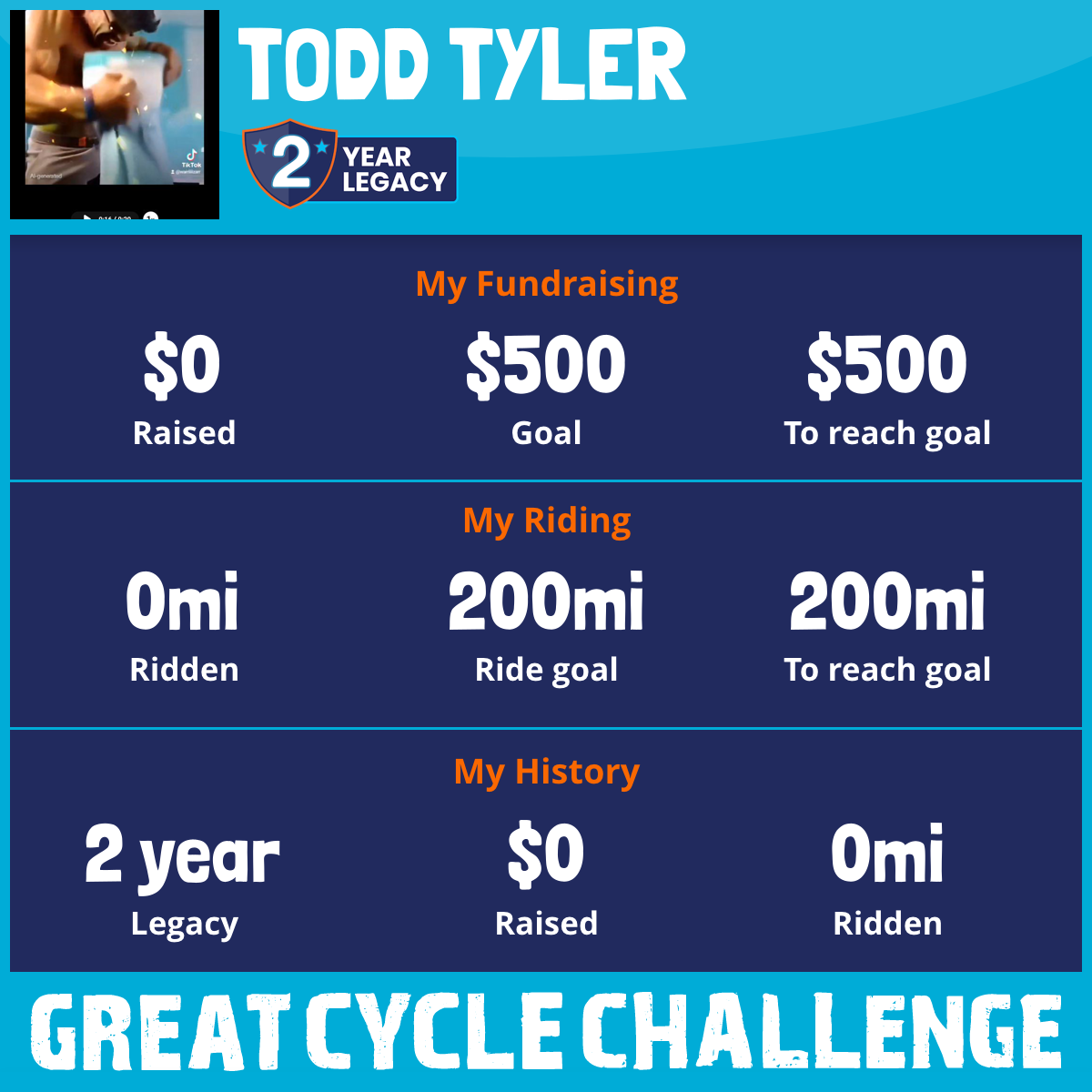 I am riding 200 mi in memory of my grandmother, Florence Tyler. Please sponsor me and support my challenge to fight kids' cancer and save little lives.