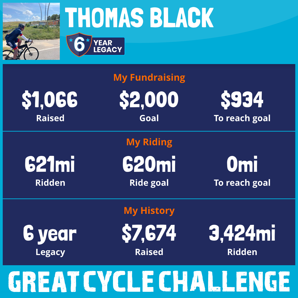 621 mi Ridden$1,066 Raised2025