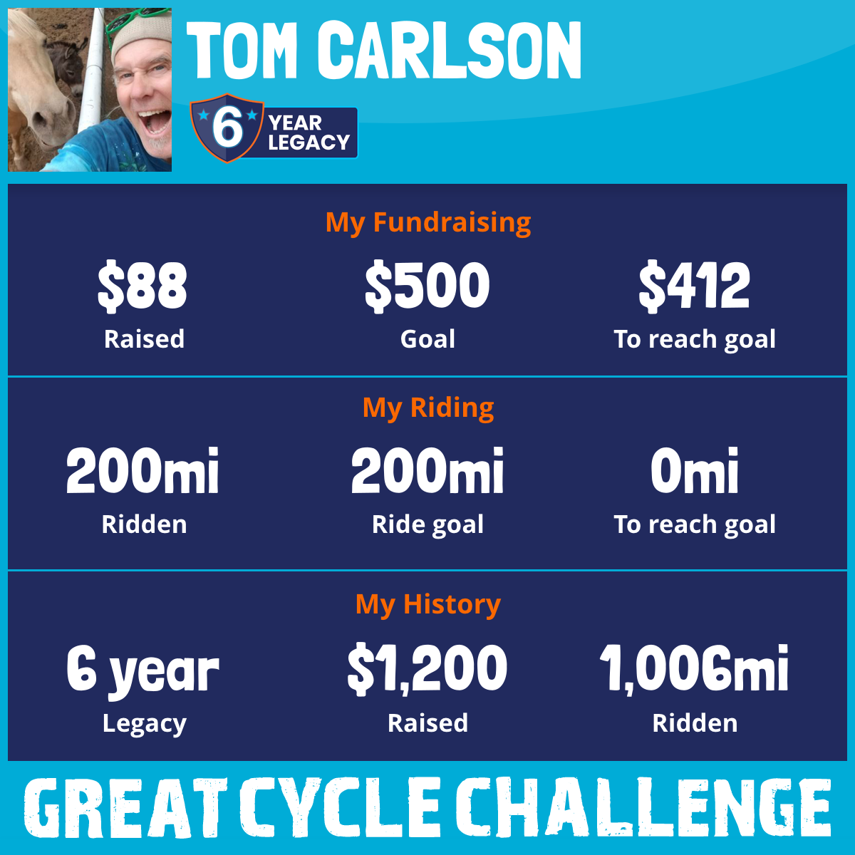 I am riding 200 mi for Reuben Carlson. Please sponsor me and support my challenge to fight kids' cancer and save little lives.