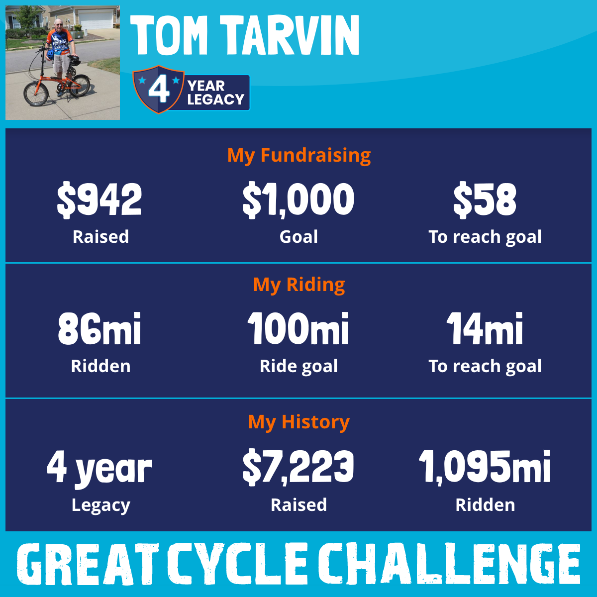 86 mi Ridden$942 Raised2025