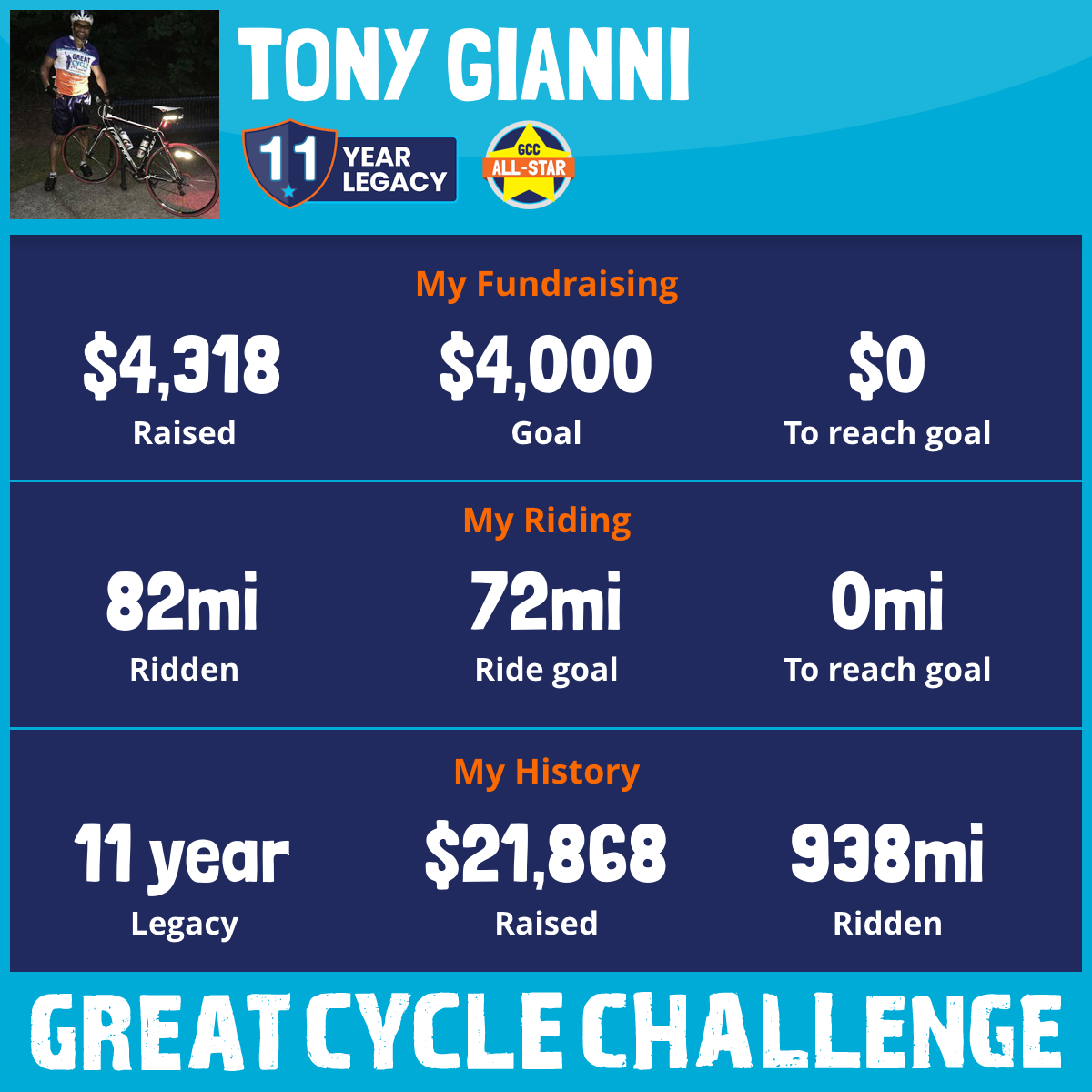 For approximately 11 years I’ve been taking part in the Great Cycle Challenge to raise funds to fight kids' cancer!
