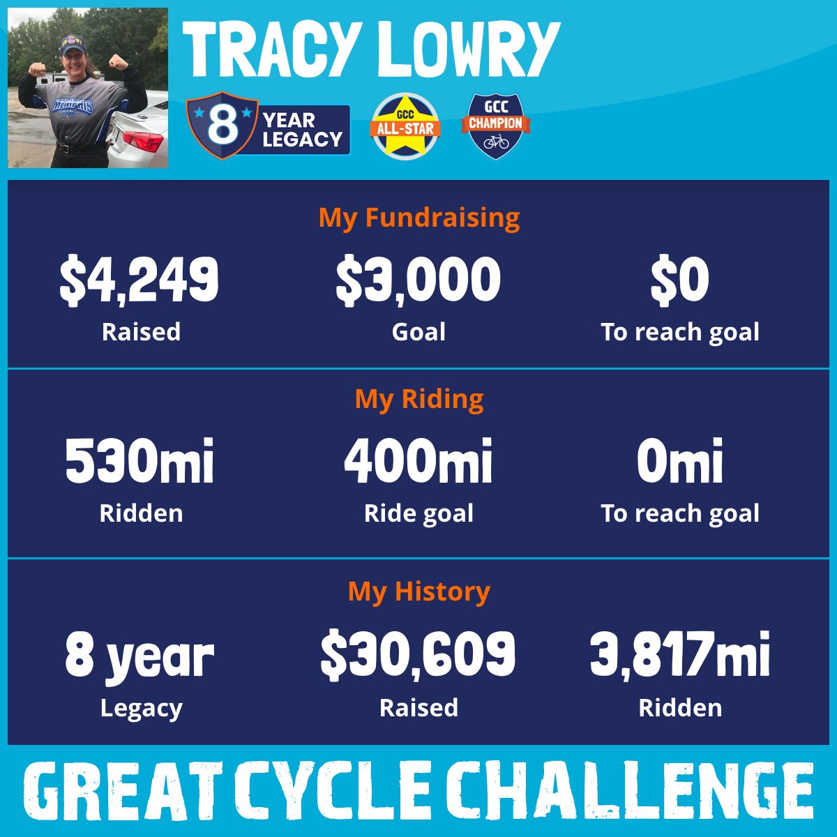 This is my 8th year riding in the Great Cycle Challenge USA in September and I am proudly honoring the memory of Cameron Fulling, who courageously fought cancer 8 years ago. His dream of becoming a firefighter someday continues to inspire me. As a retired Germantown Tennessee firefighter, now in my third year of retirement, I will ride in his honor, one firefighter to another, keeping his memory and spirit alive.