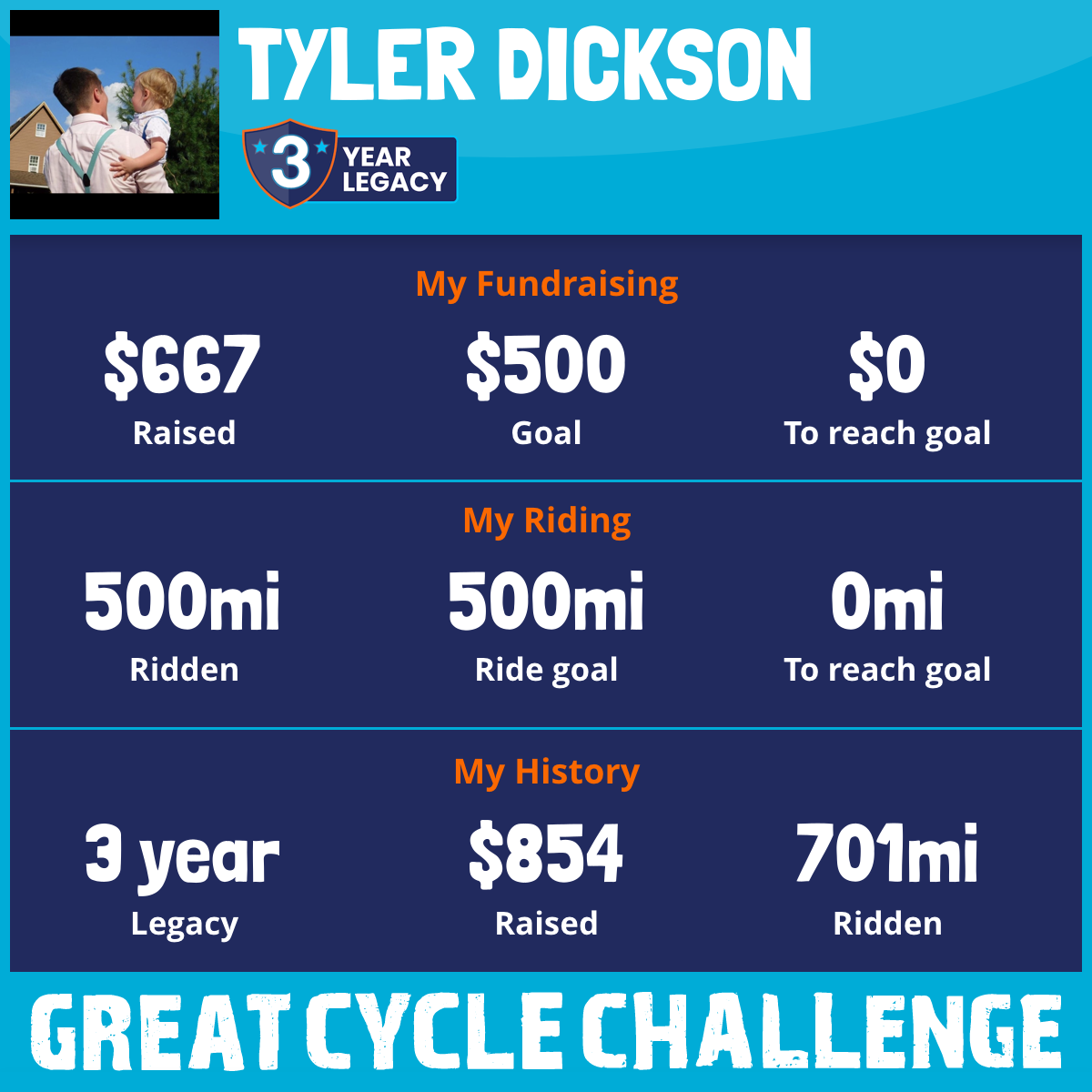 I am riding 500 mi for my nephew Grayson. He is the strongest kiddo I know and he kicked cancer’s butt! Please support in the fight against childhood cancer!