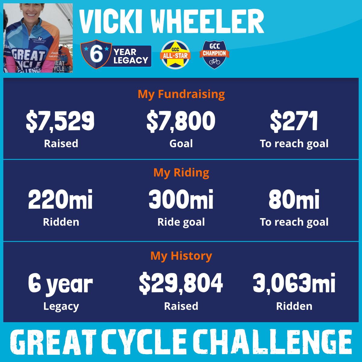 220 mi Ridden$7,529 Raised2025
