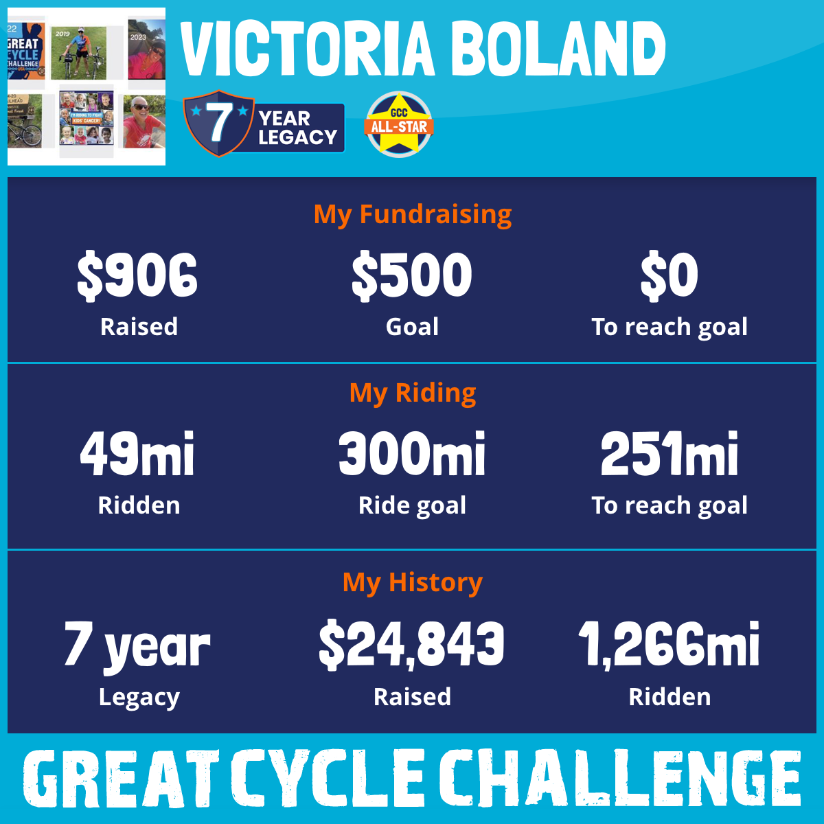 This year, although I set a goal of riding 300 miles, I won’t be able to reach that milestone. Still, I remain committed to raising funds throughout the month for this incredible cause, and I look forward to being back on the bike next year.