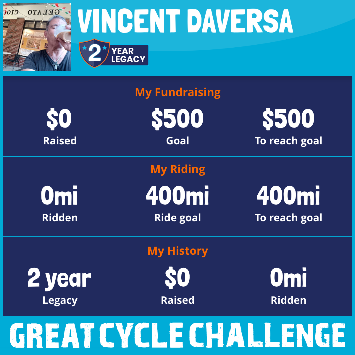 I am riding 400 mi for Donenic Cavigante. Please sponsor me and support my challenge to fight kids' cancer and save little lives.