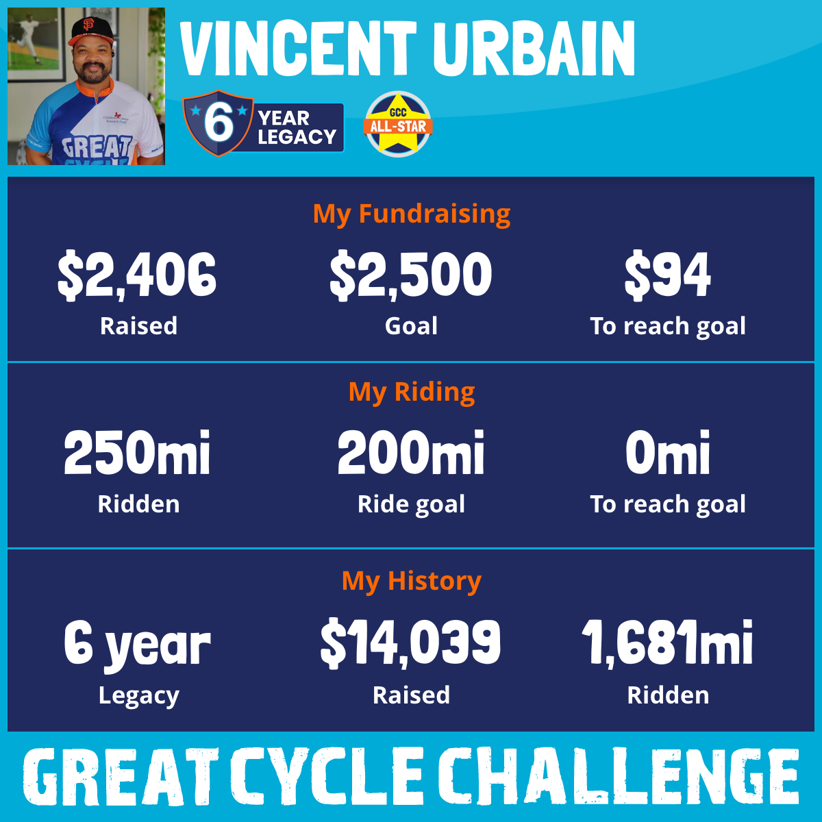 250 mi Ridden$2,406 Raised2025