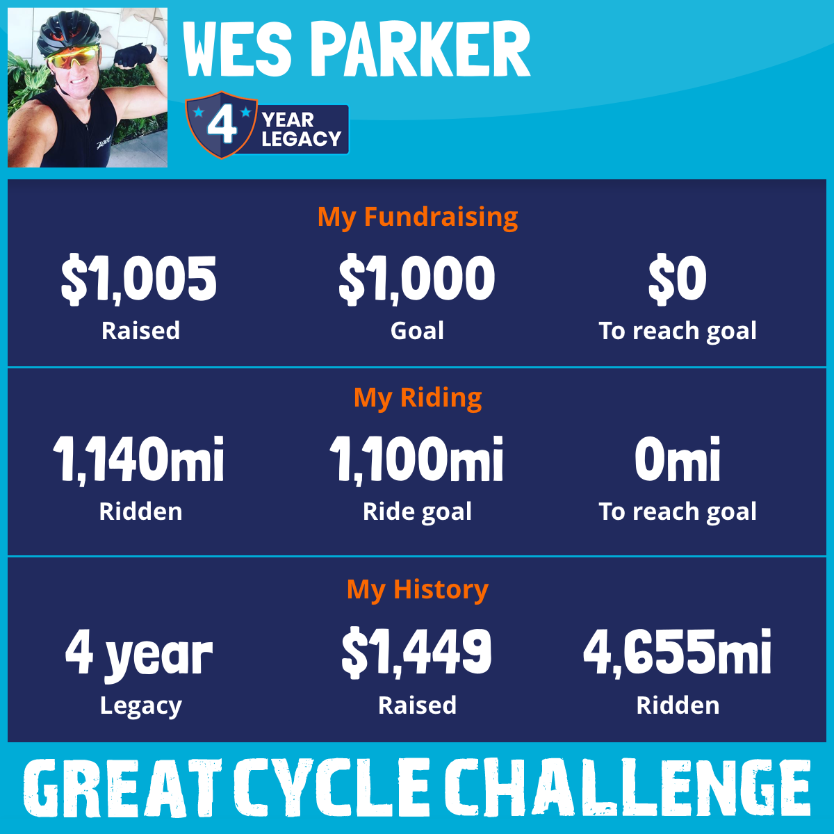 1,140 mi Ridden$1,005 Raised2025