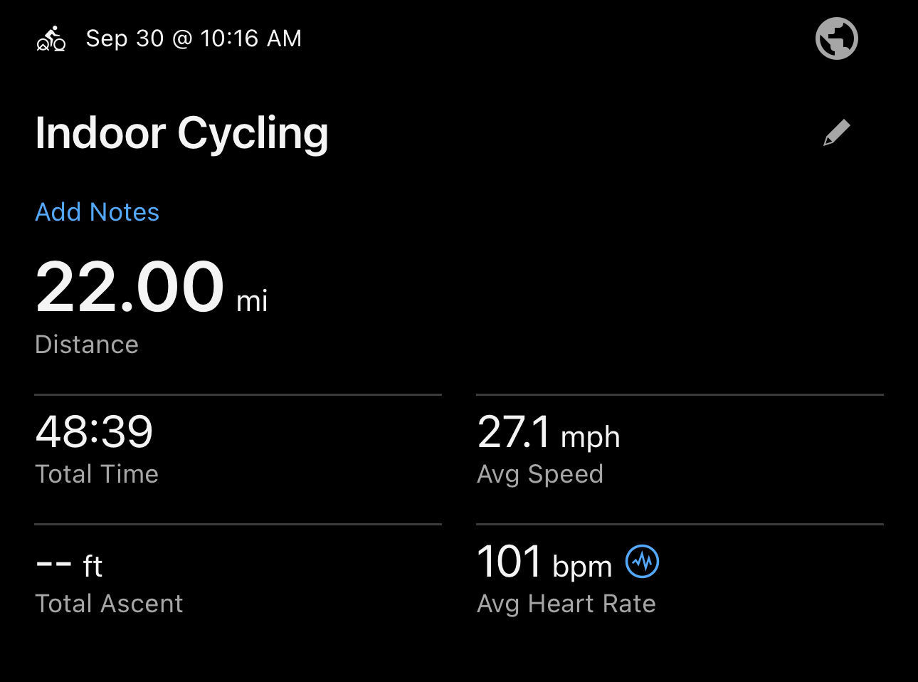 22.0 mi ride - Post workout ride/Spin #2 - Tuesday, September 30, 2025