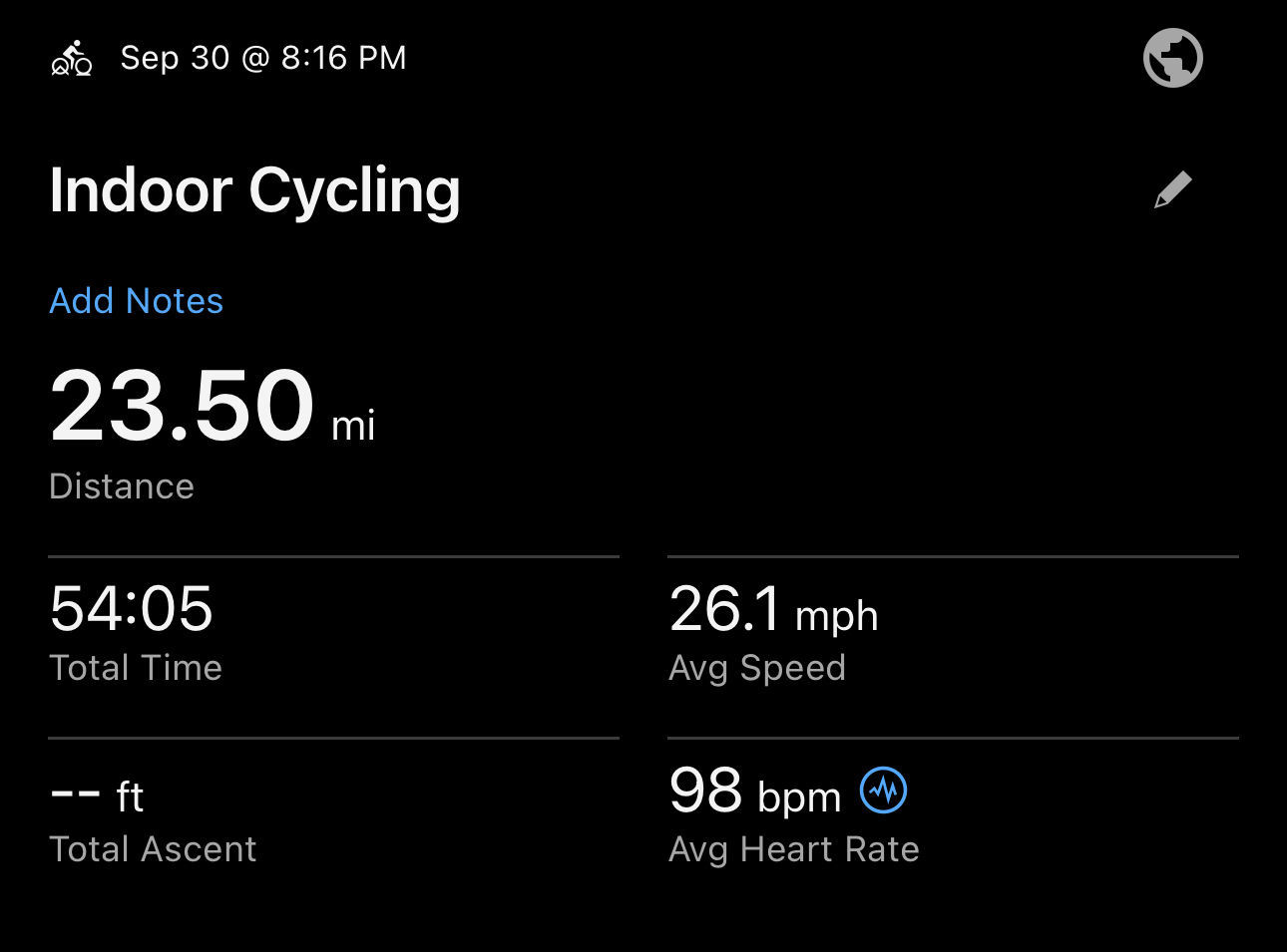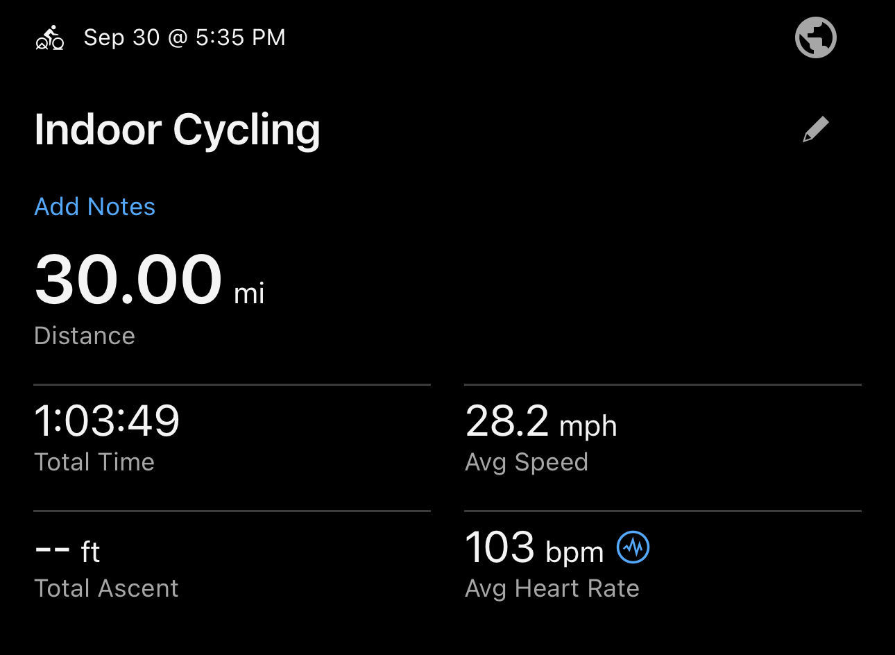 23.5 mi ride - Finish Line Spin - Tuesday, September 30, 2025