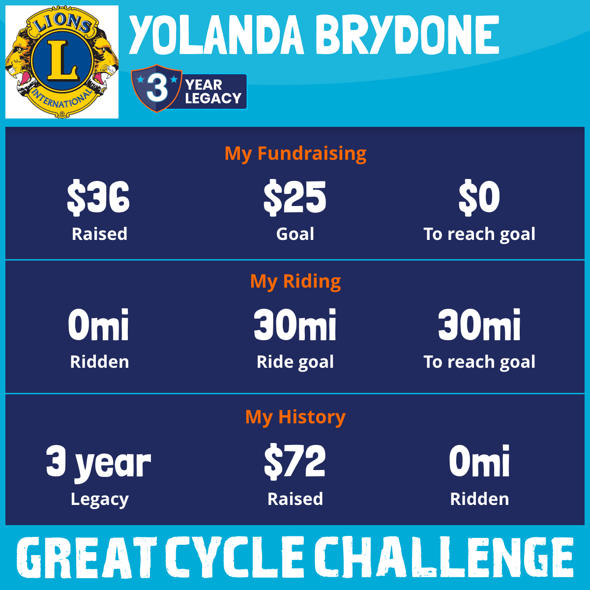 I am riding 30 mi in memory of my husband, James Brydone. Please sponsor me and support my challenge to fight kids' cancer and save little lives.