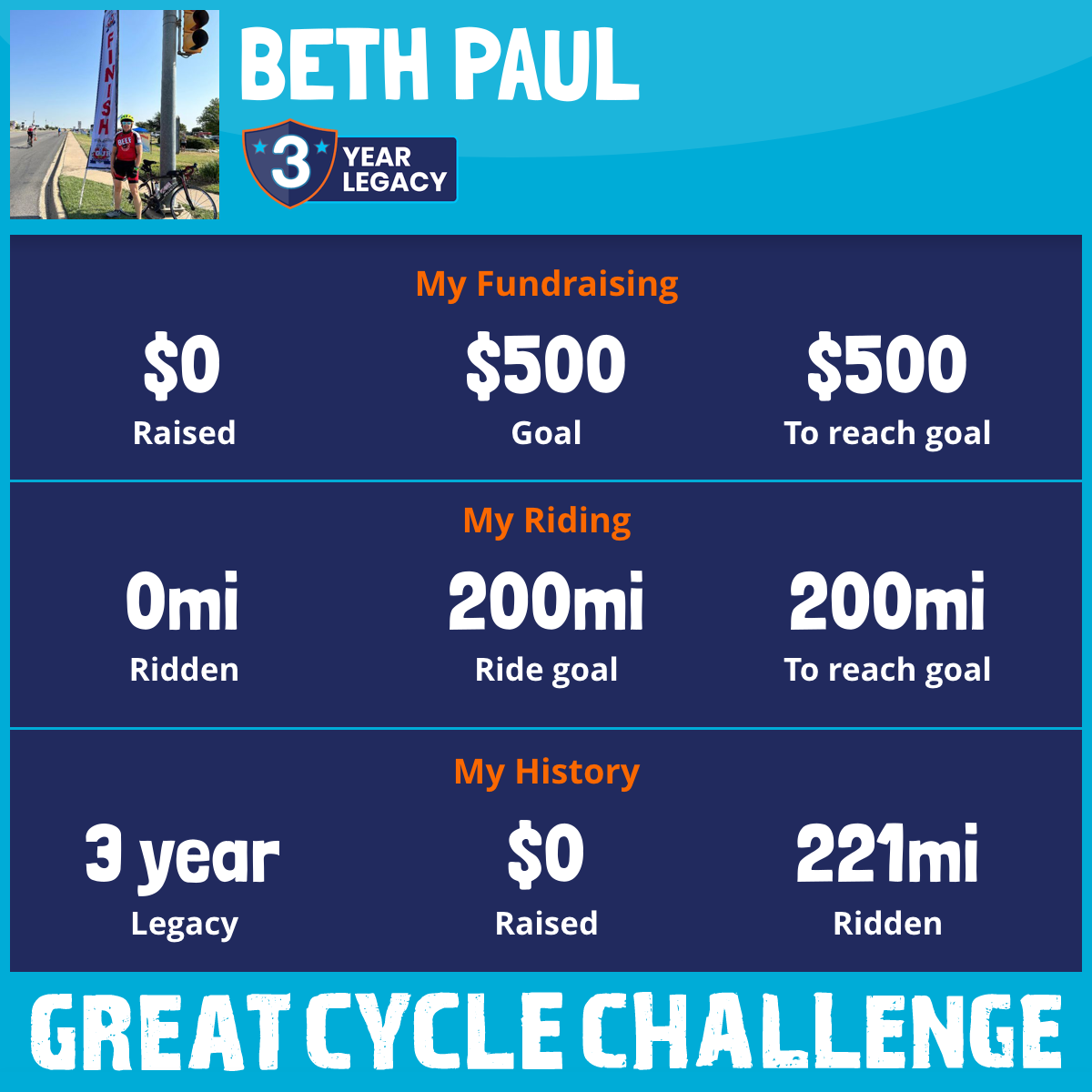 I am riding 200 mi to fight kids' cancer and save little lives. Please sponsor me to support my challenge!