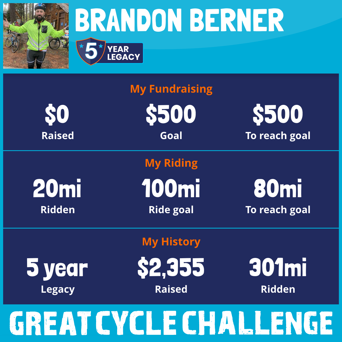 I am riding 100 mi for Darrell. Please sponsor me and support my challenge to fight kids' cancer and save little lives.