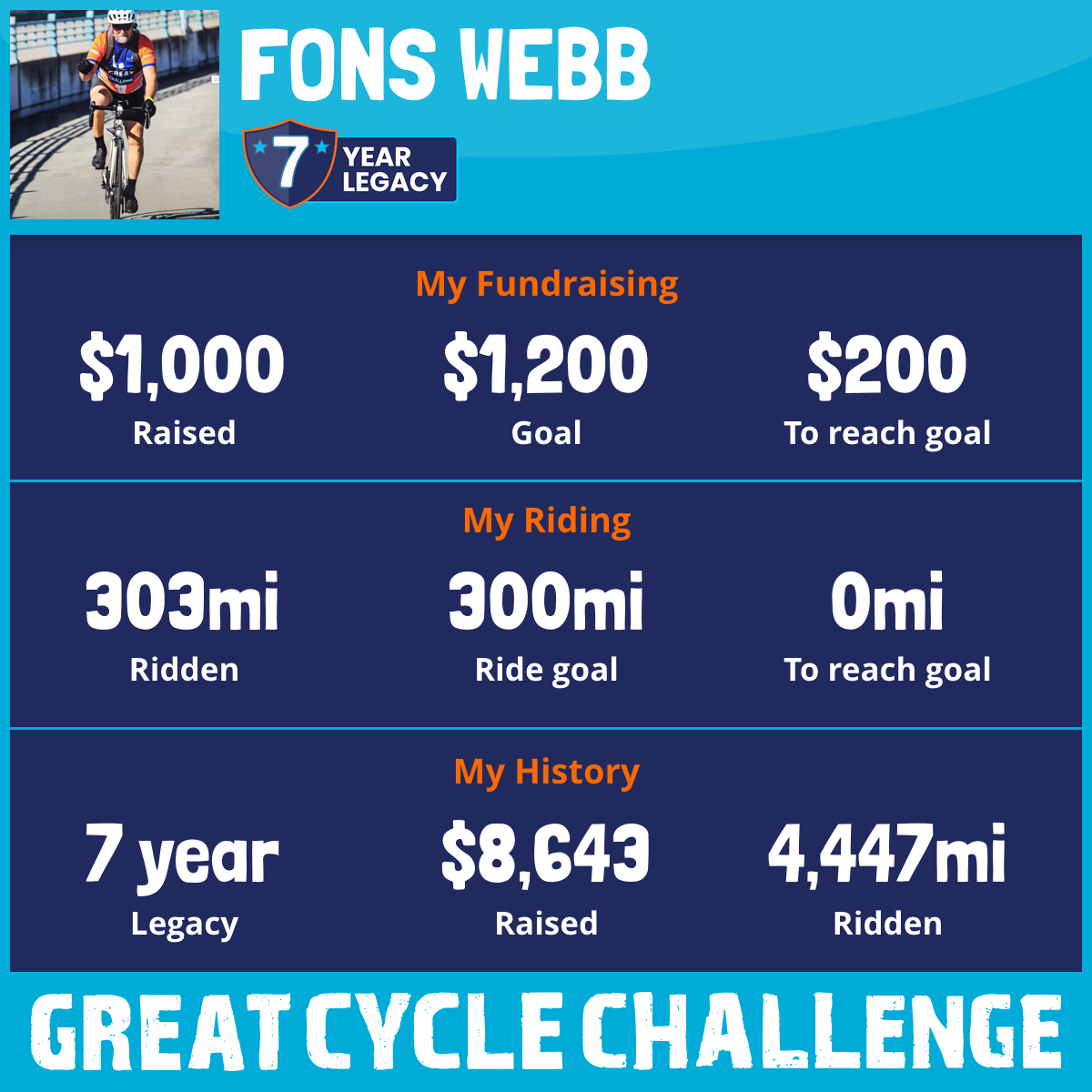 So I am raising funds through my challenge to help these kids and support Children's Cancer Research Fund to allow them to continue their work to develop lifesaving treatments and find a cure for childhood cancer.