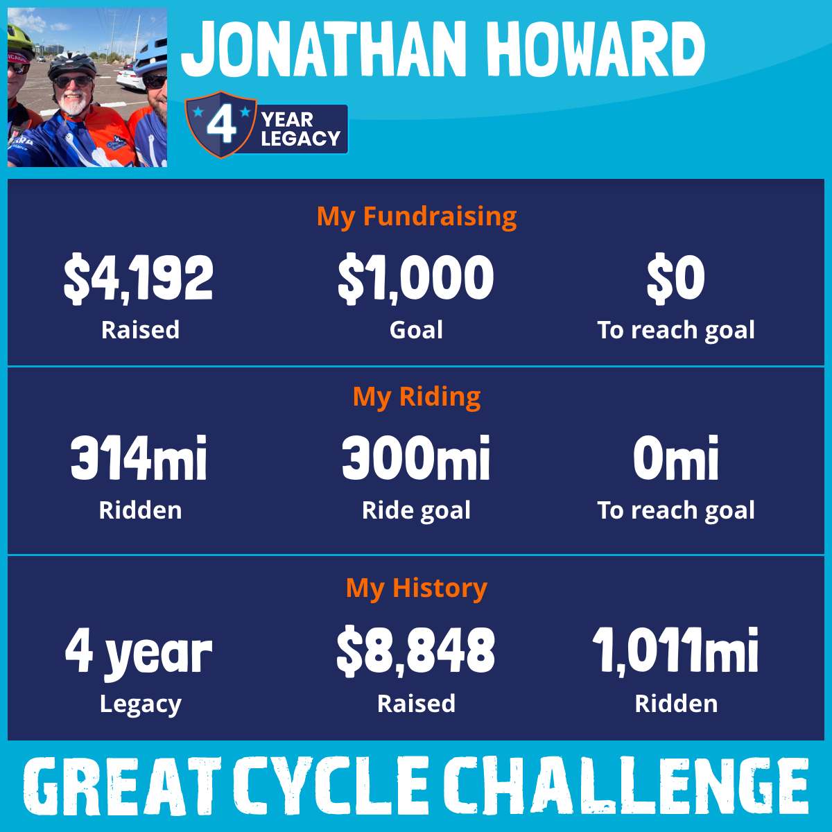 314 mi Ridden$4,192 Raised2025