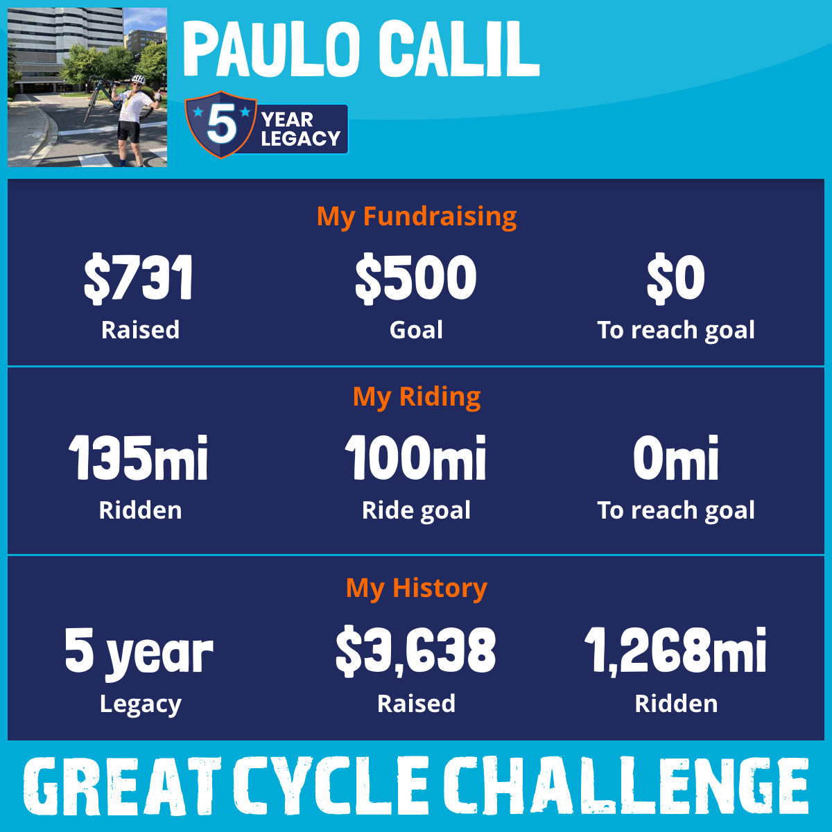 387 mi Ridden$609 Raised2021