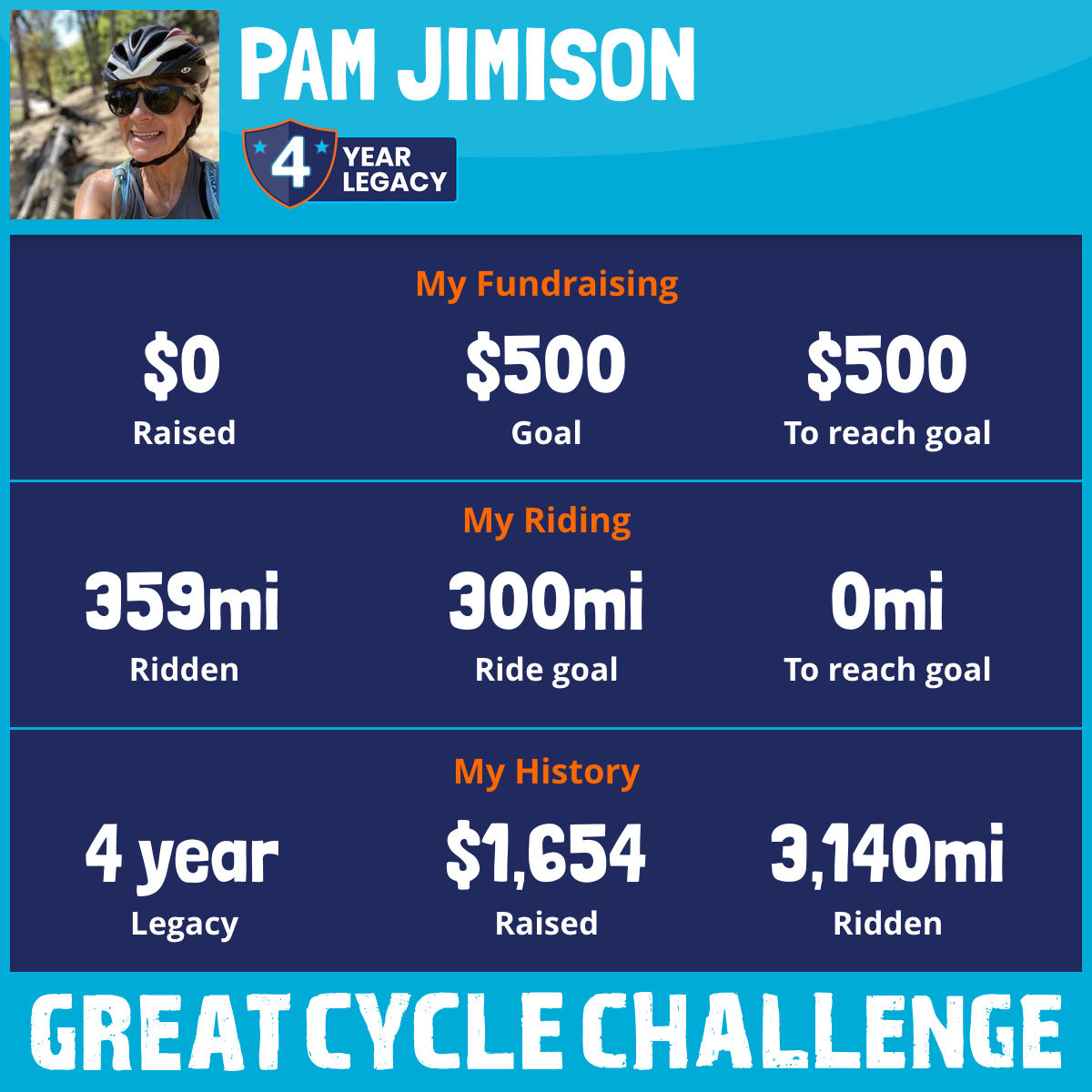 1,148 mi Ridden$1,654 Raised2021
