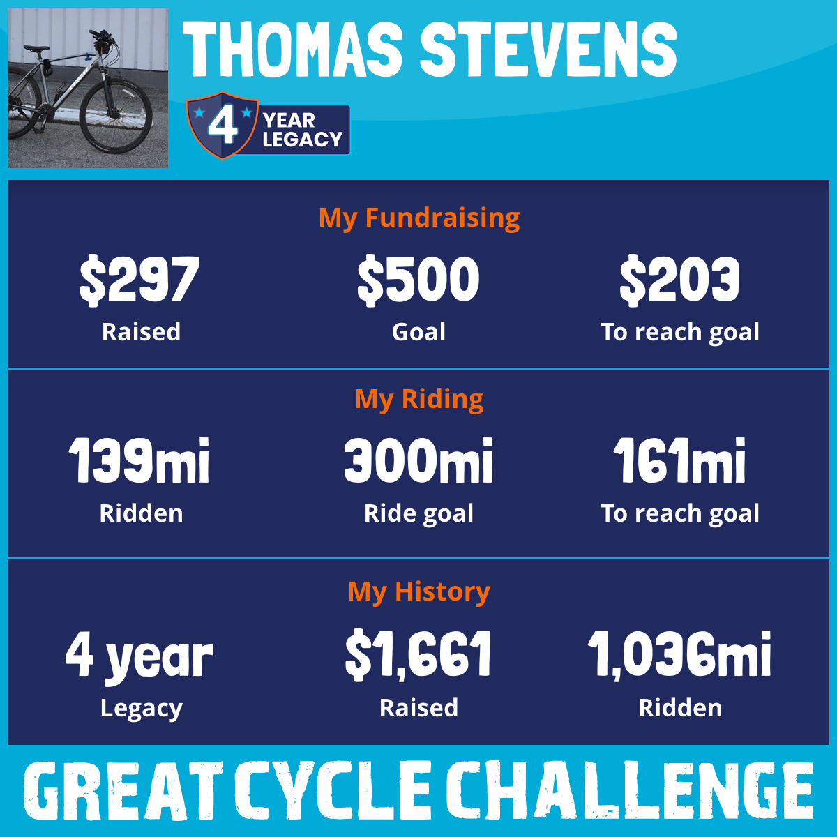 139 mi Ridden$297 Raised2025