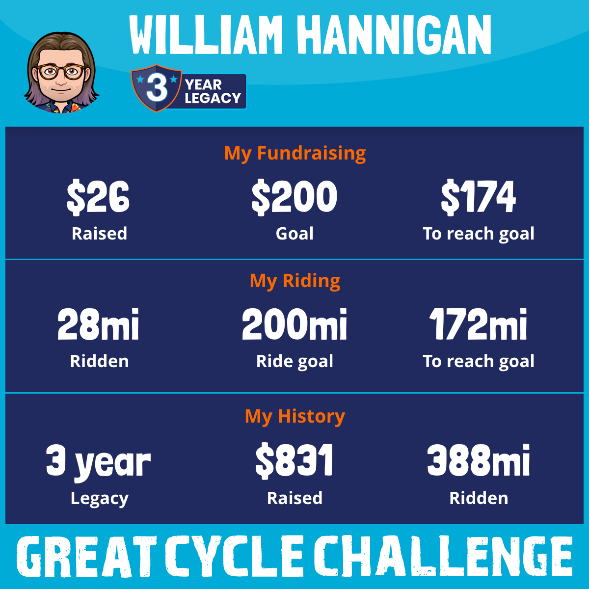 360 mi Ridden$805 Raised2015